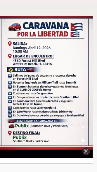 Como parte de sus acciones, este domingo el grupo realizará una caravana de autos en colaboración con Classic Cars Forever. La actividad comenzará a las 10:00 a.m. en la intersección de Forest Hill Boulevard y Military Trail, West Palm Beach, y recorrerá varias vías hasta concluir entre el mediodía y la 1:00 p.m. en la plaza del supermercado Publix en Southern Blvd.